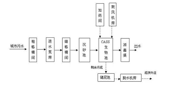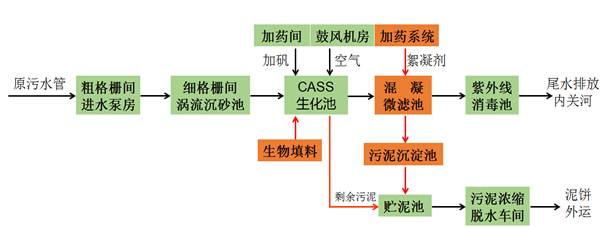 主要生產(chǎn)設(shè)備:粗格柵、進水泵房、細格柵、沉砂池、生化池、鼓風機、脫水機房、紫外線消毒池、加藥車間,新增:混凝微濾池、加氯間、污泥沉淀池等。