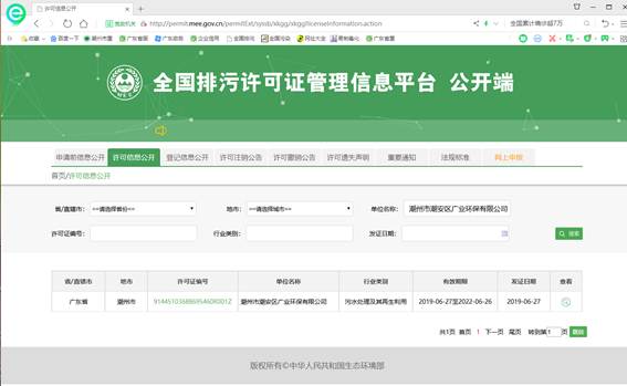 3、潮州市潮安廣業(yè)環(huán)保有限公司在全國排污許可證管理信息平臺 公開端 的許可證 信息公開。