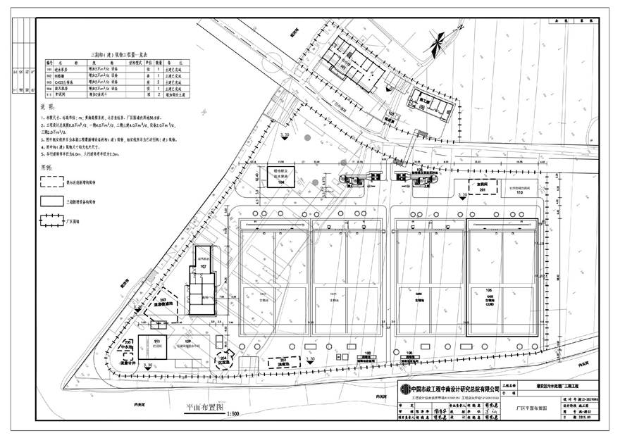 一期項目在安南路與金里路交叉口竹圍村設(shè)污水提升泵站一座,泵站占地2.4畝(泵站到廠區(qū)配套相應管網(wǎng)長度約為1.8公里)。項目規(guī)劃設(shè)計總規(guī)模為8萬噸/日。首期建設(shè)規(guī)模為4萬噸/日,包括廠區(qū)工程和廠外泵站收集系統(tǒng)工程(首期工程于2010年9月1日起開始正式商業(yè)運行);二期工程建設(shè)規(guī)模為2萬噸/日,于2013年11月24日正式動工,2015年1月28日完成二期工程分項交工土建方面的驗收,同年3月份進入試生產(chǎn)階段,于2015年5月1日正式進入商業(yè)運營。二期廠區(qū)土建工程生產(chǎn)構(gòu)筑物及輔助建筑物按總規(guī)模4萬噸/日建設(shè),內(nèi)容包括細格柵及渦流沉砂池、CASS生物池及相關(guān)閥門井、紫外消毒池、相關(guān)檢查井及管道、綠化工程等,一次性建成;其中進水泵房、污泥濃縮脫水車間、鼓風機房及配電中心增加2萬m3/d設(shè)備,細格柵及渦流沉砂池、CASS生物池、紫外消毒池的設(shè)備按2萬m3/d進行安裝。項目關(guān)鍵設(shè)備鼓風機、推流器、提升泵、自控系統(tǒng)及其配套設(shè)備等選用進口設(shè)備,其余設(shè)備選用國內(nèi)知名品牌。