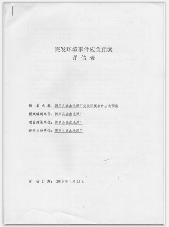 環(huán)境風(fēng)險評估情況 已制訂《博羅縣盛鑫洗漂廠環(huán)境風(fēng)險評估報告》,并于2019年1月25日上報博羅縣環(huán)境保護(hù)局備案;